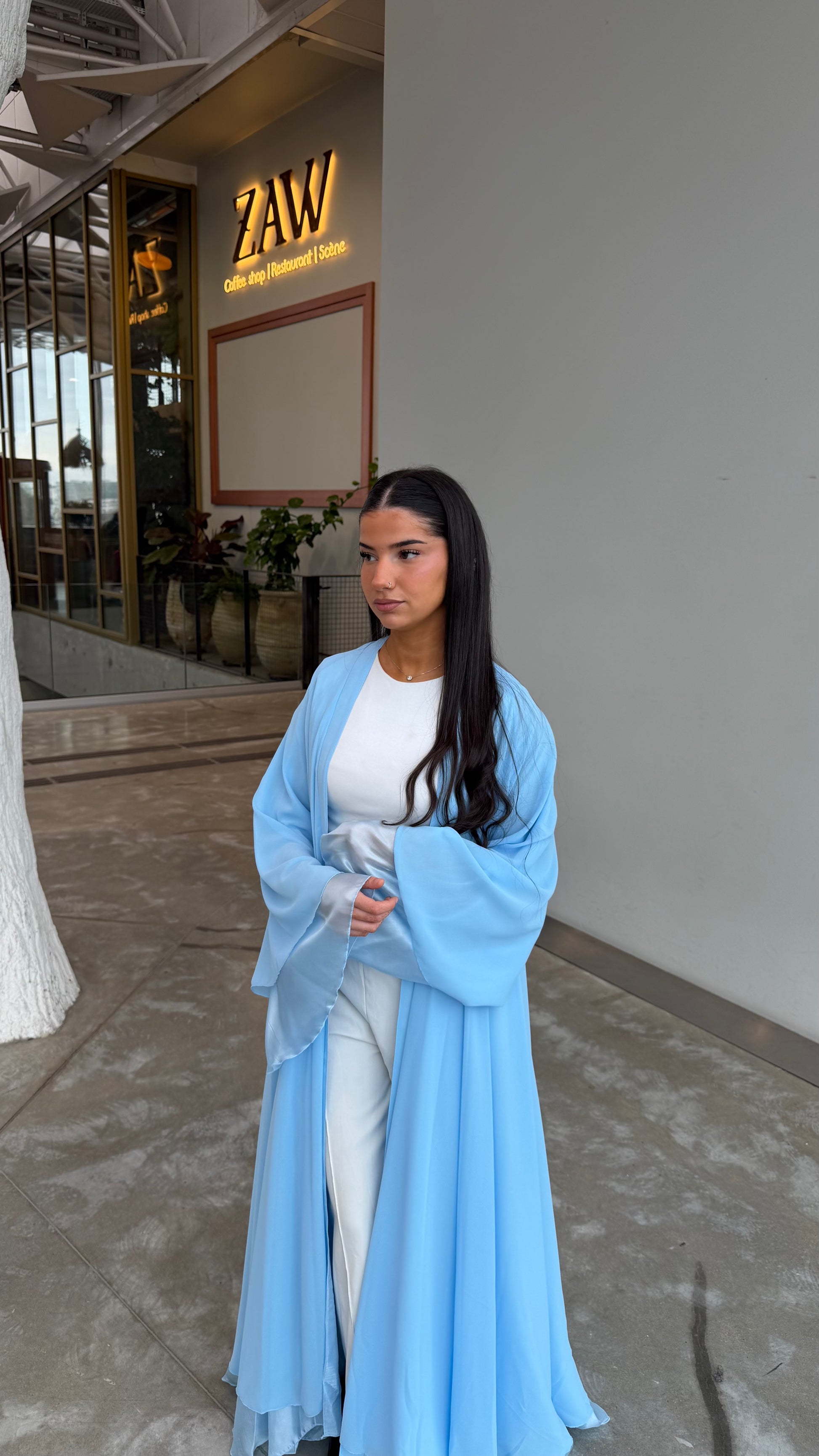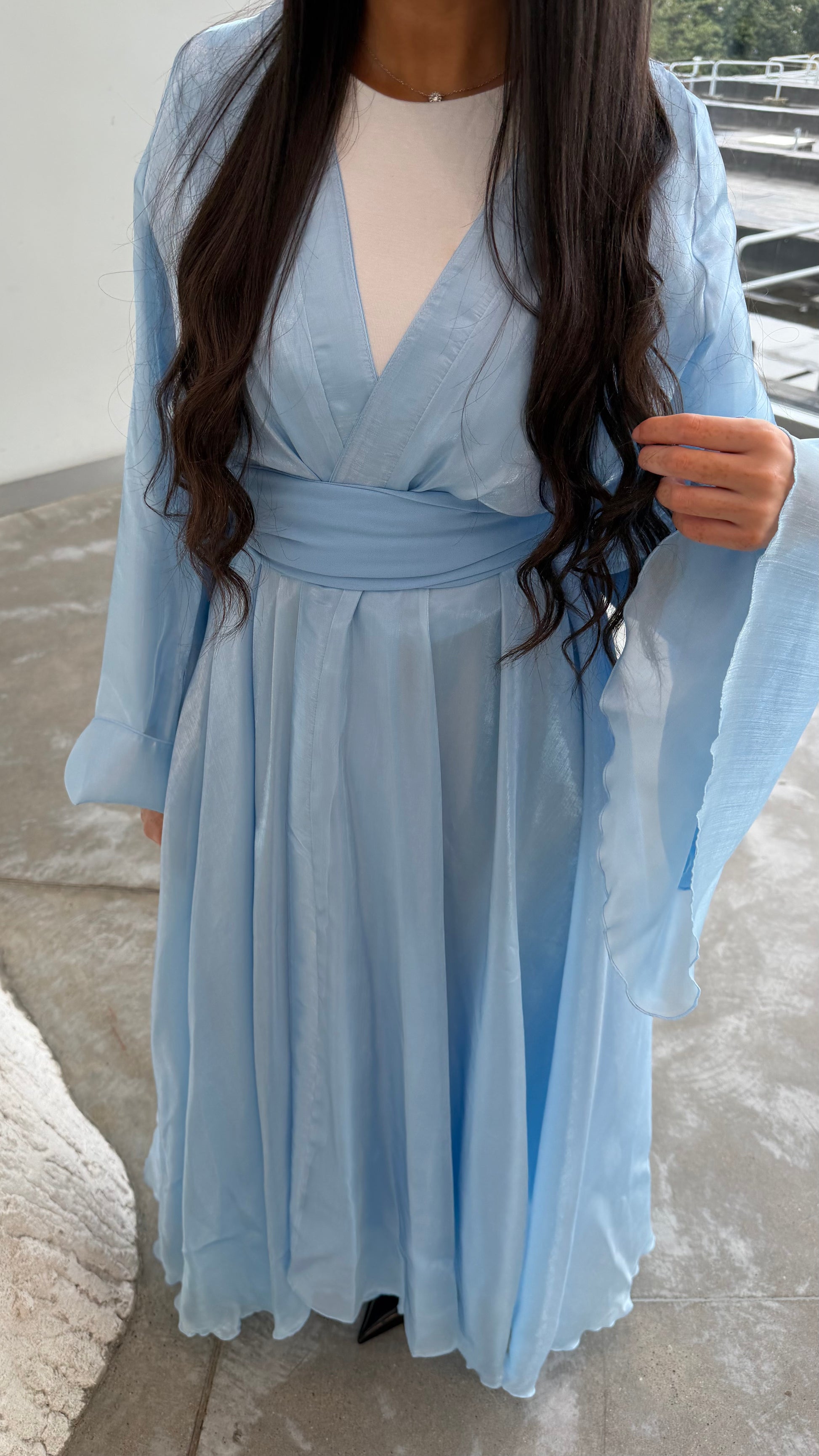 Le kimono Sky ByAlmirah réversible allie élégance et douceur. Sa teinte bleu ciel lumineuse apporte une touche fraîche et raffinée à toutes vos tenues.